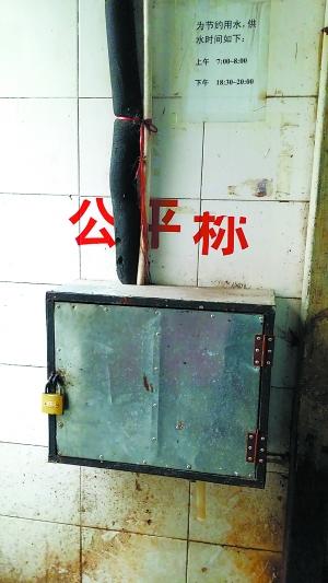 记者再次回到菜市场,问询商户,发现一个角落里的墙上写着“公平秤”,但字的下面没有秤,却有一个上了锁的铁箱子。商户告诉记者,那箱子里是一个水管,根本没有公平秤。“我在这干了两三年了,就没见过有公平秤。”