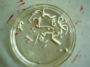 检查出的曼氏裂头蚴。