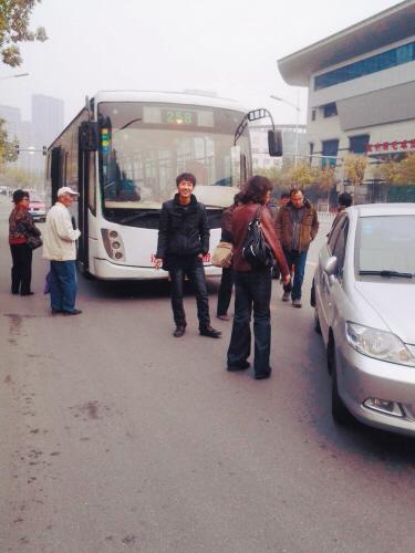 公交“剐”私家车 女司机超车拦停公交求说法