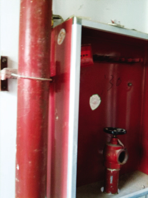 在楼下做生意的老板说,这栋楼楼下的消防栓是有水的,前段时间,还用来冲洗过马路。他怀疑楼上没有水的原因,可能是由于水压太低造成的。
