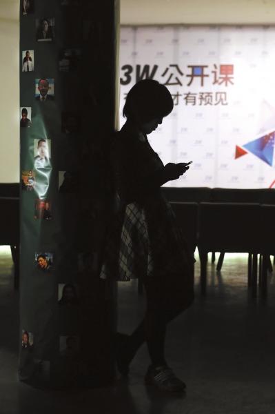 3W公开课已成为咖啡馆的招牌,不少刚起步的互联网公司在此推介自己的项目。Ella忙完在过道休息一会儿。