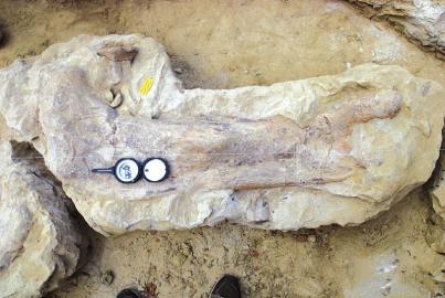 被发掘的化石。