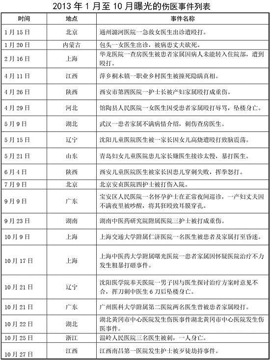 9月和10月,媒体陆续曝出各地伤害医生的事件,数量达9起,光10月就发生了6起。
