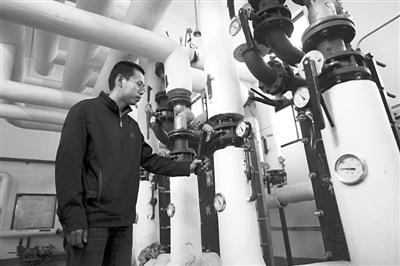 2012年11月4日,农垦点热力站,一位工作人员检查供暖设施,当天北京提前正式供暖。今冬北京提前供暖的可能性较小。资料图片/新京报记者 薛珺 摄