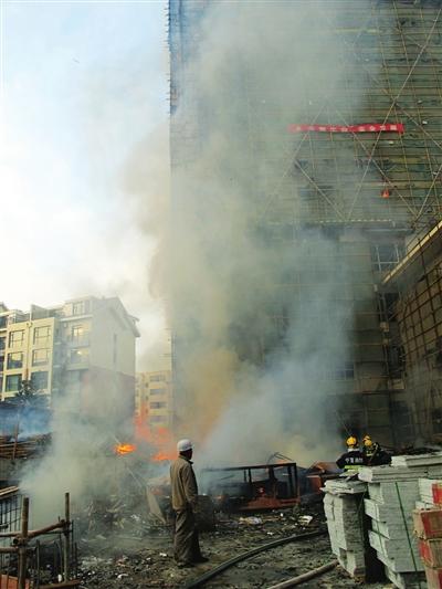 4点20分,本报热线电话4012020接到读者爆料,上海路的一处在建工地发生火灾,火灾所产生的烟雾比在建的一座大楼还高,消防员已赶到了现场。