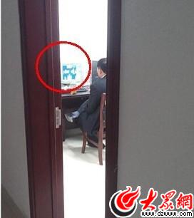 在网友拍摄的曝光图片中,记者发现还有一名工作人员在玩电脑游戏。