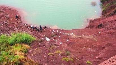 据周先生回忆:“当时路面上有稀泥,我开车也比较慢,估计20码左右,车子一下就打滑失控,冲下悬崖,我脑中一片空白,以为死定了。车子掉在悬崖底部坡上的泥土表面,一下就弹到水下了,当时就晕了。”