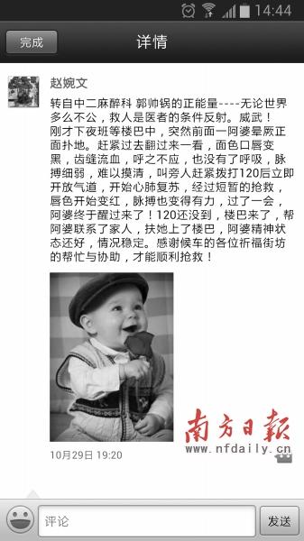 郭明炎抢救晕厥阿婆的微信广泛流转。