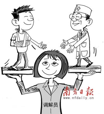 今年6月1日,《广东省医疗纠纷预防与处理办法》实施,给出了“第四条道路”——全省每个地市都要设立“医疗纠纷人民调解委员会”(简称医调委),是挂靠司法机构、由法律和医学等专业人士组成的第三方调解机构,医患双方当事人可向其申请调解。据了解,从2011年6月试运行到今年9月底,省医调委经手医疗纠纷案件2995件,其中符合立案受理2595件,已结案1880件,成功调解1763件,成功率达到93.7%。