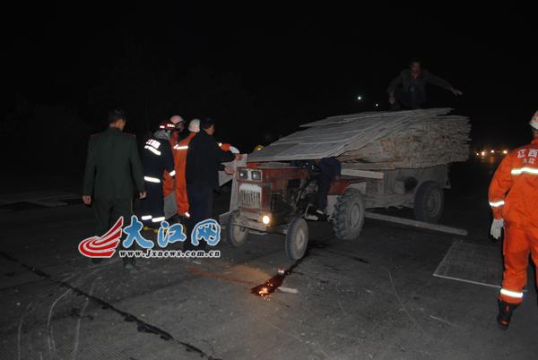11月3日晚上7时许,九江湖口县蔡家庄发生一起事故,一辆运木材的农用小四轮拖拉机行驶在下坡时整车木板“失控”,司机被压其中,导致司机当场死亡。