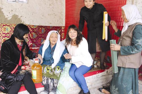 在阿丽米罕老人家里,每天都有来自全国各地的游客前来看望老人。