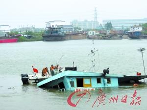 昨天上午10时许,市边防支队南朗边防派出所官兵在横门水道横门大桥附近水域执勤中发现一艘沉船。这艘运输的货船已经沉没,整艘货船只剩下船头以及部分船舱露出水面,情况十分危急。