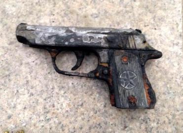 随后,一位围观的市民将这个“铁坨坨”拿去清洗后发现,竟然是把“手枪”。