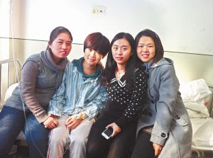 爱娇(左二)和寝室姐妹在病房。