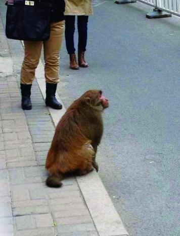 网曝北京东三环现散步猕猴 引路人围观照相(图)