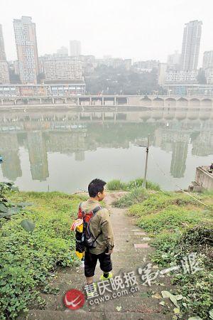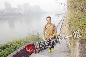 彭勇来到嘉滨路,他每天从这里横渡嘉陵江。