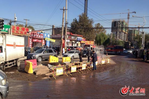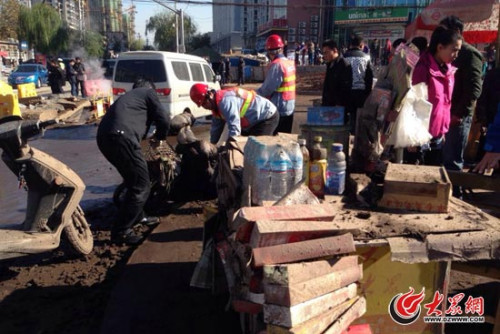 济南地下热力管道爆炸 路面被掀翻有人受伤(图)