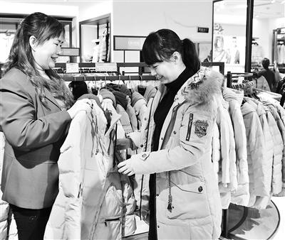 消费者在唐山百货大楼羽绒大世界选购羽绒服。 本报记者 田瑞夫摄
