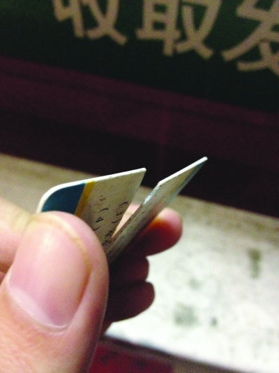 好好的卡都没人碰,咋会断了呢?记者查看该卡发现这确实不是一张新卡,卡面很脏,看上去已经使用很多年。从外观上看,并不能直接发现卡“断”了,要用手去掰,才会发现卡中间有一条开裂了近三分之一的缝隙,缝隙的断口有污渍,并不是新鲜断裂的样子。