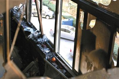 昨天下午,失火住宅已被消防部门封锁,阳台玻璃全部破碎,部分钢框断裂,家具都被烧焦。楼内仍能闻到刺鼻的气味,房内还能听到哗啦啦的水流声。从外面看,五楼、六楼的阳台也有烧焦痕迹。