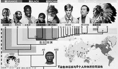 基因记录了人类演变的全过程,而Y染色体只能父子相传且无重组,所以根据Y染色体,可以绘出人类的每次分化演变。