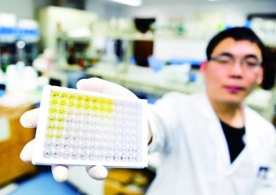 工作人员展示用定量检测试剂盒检测的样品。新华社记者 公磊摄