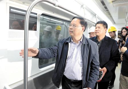 昨日,市委副书记、市长张剑飞在地铁2号线了解试运行前的准备情况。石祯专 摄