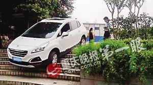昨下午,记者联系到这位出租车司机。他姓徐,自称有着多年驾驶经验,显得很不好意思。“虽然文化宫走了很多次,但里面情况不熟。我本来是送一个乘客带小孩到文化宫补课。下车时乘客告诉我,出去要右拐。我看见前方有个禁行标志,于是就按乘客说的往右拐,我哪里晓得前方就是梯坎嘛!”徐师傅说,他赶忙踩刹车,但车子还是冲下10多步梯坎,卡在梯坎上,