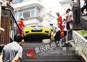 2011年5月10日 地点:解放碑重百临江商场来龙巷 事件:一辆出租车在解放碑来龙巷冲下50级台阶平稳停下,未造成人员受伤。司机开货车10多年,刚开出租不久,对主城路况不熟。