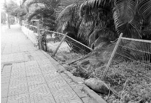 桥边设置的围栏弯曲变形,快要倾倒,市民黄先生担心存在安全隐患,向本报反映。