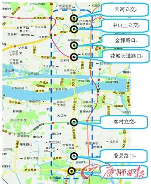 3.拓宽工程实施中,还会研究一系列交通节点交通优化配套措施,例如拓宽金穗路口、在客村立交增加掉头车道、在中山一立交-天河立交增加转弯车道等,通过这些配套措施,将会整体提高广州大道通行能力。