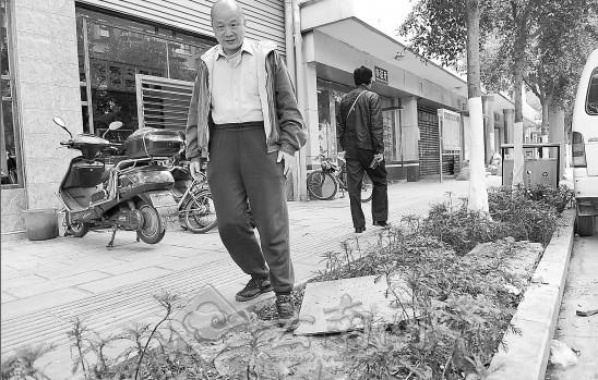 9月19日中秋节,魏大爷吃完饭出门散步,不经意踩到人行道旁边的一个窨井盖,没想到这个窨井盖突然“打滚”,他当即摔倒在地,鞋子烂了,裤子破了,3根肋骨也被摔断了。在地上躺了半个小时,魏大爷才吃力地爬了起来。由于事发地点就在北京路派出所旁边,他到派出所报了案。后来,疼痛难忍下又打不到出租车,魏大爷还是拦了一辆私家车,到云南省第三人民医院治疗。住院十多天,魏大已花费了8000多元的治疗费。日前,在家休养的魏大爷带领记者再次来到事发地,但这个地段已成了一个完整的绿化带,当时的窨井盖就位于其中。