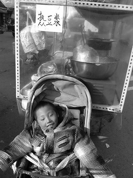 为了让“重生”保持最佳体质,平日里除了给孩子增加肉蛋营养,李振中还购买“营养餐”、“芦荟矿物晶”等增强孩子体质的辅食,而这笔花销几乎是全家每月生活费的一半。无论春夏秋冬,小“重生”都是穿着纸尿裤生活,因为孩子随时随地会大小便。一笔笔不菲的开支,全部来源于妻子周云侠在大名古城北门外的一个小吃摊。