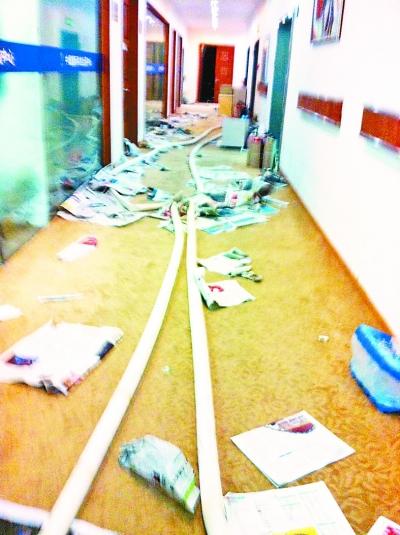 北青报记者进入B座楼内,看到一层和三层仍然一片狼藉,其他楼层则处于正常工作状态。