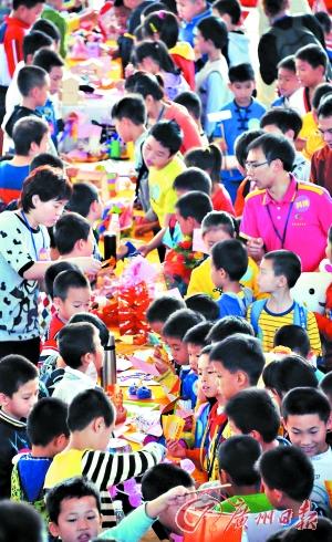昨日上午,番禺首届“娃娃庙会”在番禺星海青少年宫举办。在极具市井味道的庙会小摊上,孩子与家长们扯开嗓门落力叫卖,场面火爆。别开生面的庙会吸引了5000名孩子参与,他们售卖自己亲手制作的手工艺品,半天“成交额”高达3万多元,全部捐给了番禺区重症困难儿童。