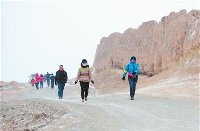 55岁的王宏斌是本次徒步走中年龄最大的,他平时就喜欢户外运动,这次银川晚报举行的保护长城公益活动把户外运动和公益事业很好地结合起来,第一天看到消息他就报名参加了。当天下午,山下的阵风达到6级左右,天空开始下起大雪,很多队员才走到一半路程,在同行者的鼓励下,几名准备踏上救援车队友放弃了搭车的念头,一起拉着手在风雪中沿着长城前行。