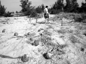 据下园村民吴先生称,11月6日,老方村书记陈某、村委会主任方某带着该村的10多名村民赶到这片海防林带,不由分说便将刚长至1米多高的椰子幼树全部砍毁。吴先生拾起一株幼树说:“不光砍倒,他们还把根都刨了出来。”