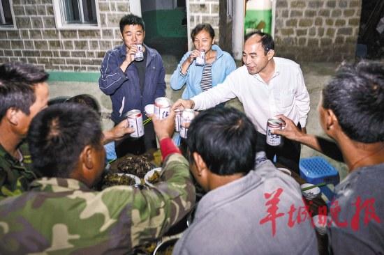 每次刘清伟从外面带菜带肉回担杆岛,都会叫保护队的队员和渔民一起吃饭,热闹似过年