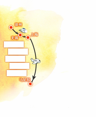 25日凌晨3点40分,飞机抵达马尼拉国际机场,经历了一系列的安检和海关程序,5点15分,装载着民族服装的行李箱顺利出关,抵达国际出口T1,菲律宾籍的司机正在等候。