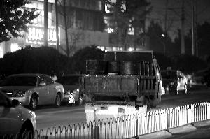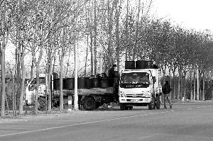 半个小时后,另一辆车牌号为“京QJX703”的白色半封闭式小货车停在了“福田”车旁,司机下车后手脚麻利,将“福田”上的油桶搬到了自己车上,扬长而去。记者随即开车跟上,并适当地与之保持一段距离。