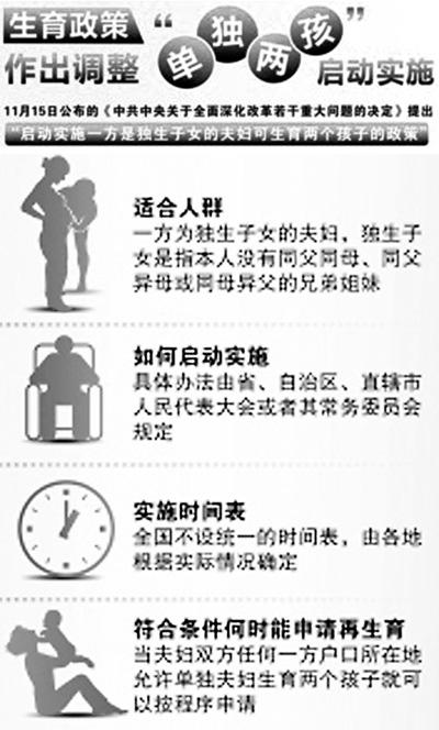 这几天,我们厂里几个姐妹一有空就聚在一起聊“单独两孩”的事情。大家都说,按照我家里的情况,符合“单独两孩”的条件。说实在的,当听说三中全会将实施一方是独生子女的夫妇可生育两个孩子的政策后,我们一家确实高兴了一阵子。