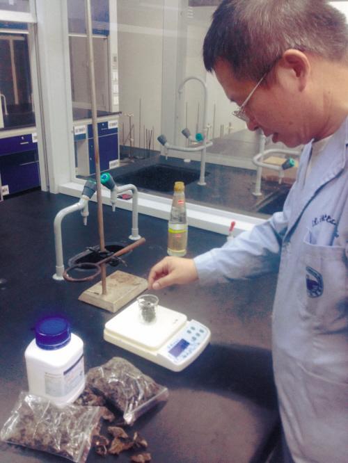 1.把两个空烧杯放在台式天平上,之后在每个烧杯内称出3克木耳;