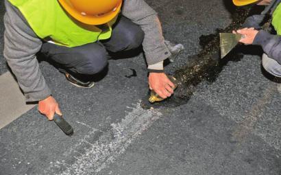 昨日上午12点过,记者来到二环高架人南立交东侧公交站前,路面上一条细细的白色带子向着永丰立交的方向延伸,如同多了一条车道线。这条细线从人南立交东侧一直绵延到永丰立交创业路方向匝道处,有近3公里长。“宽的地方有15厘米,窄的2厘米。”成都市城管局道路桥梁管理处的4名工作人员正在现场测量和取样。
