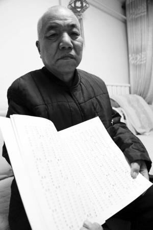 鲁庆祥展示他发明的“尾笔分类部首查字法”新型字典草稿。燕赵晚报记者丁宝军 摄