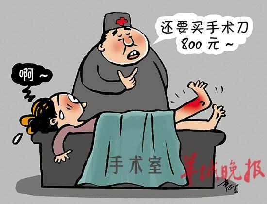 患者做手术,交了手术费,还要再自购手术刀,真可谓天下奇闻。近年,在舆论的抨击下,医生开大处方,拿回扣的做法似有所收敛,但在某些地方的医院,看来这种行为仍大行其道,只是改头换面换了形式,变着法儿掏患者的荷包。只是,由病人自购未经正式招投标的手术刀,万一出了事故,责任又该谁来承担?