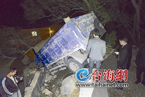 土方车冲下山坡压垮屋顶 同车男子称因刹车失灵