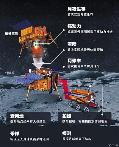 第四是工程展示度高。着陆器落下去之后就停止在着陆的地方,虽然也进行探测,极紫外探测和月基本光学探测一般是专业科学家感兴趣的事,但对月球车今天走了多少、明天走了多少、今天干了什么明天干了什么,老百姓是很感兴趣的,所以可能会成为后续的热点。”