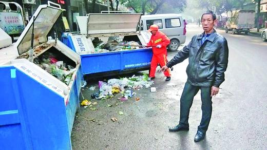 “老师,你车子停好久啊?一会儿环卫车要来收垃圾。”环卫工吴修四上前劝阻货车司机。