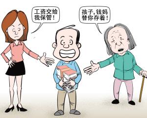 杨波是独生子,从刚上班的时候开始,他的工资卡一直是交给老妈甄阿姨保管,甄阿姨每月给他1000元零花钱。今年5月,杨波和相恋3年的女友小甜结婚了,两个人过起甜蜜的二人世界。“上个月有一天下午,我接小甜下班回家的时候,她就说我们俩既然已经结婚了,我就必须要把工资卡交给她保管。”杨波觉得工资卡交给老妈还是老婆是无所谓的事儿,谁知他回到家和老妈商量,结果是:老妈坚决不同意交出儿子的工资卡。