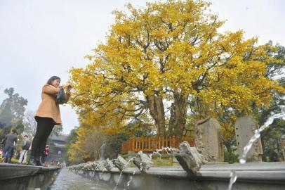 都江堰离堆公园里的“张松银杏”已有一千多年历史。